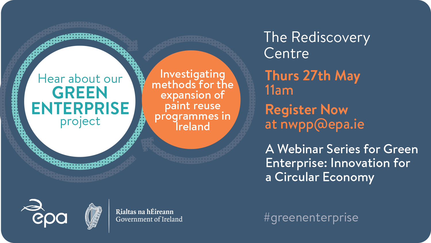 Rediscovery Centre – Rediscover Paint – Building on the success of Rediscover Paint, a reuse project in Ballymun, this research investigated the opportunity for paint reuse and waste prevention in Ireland. In an attempt to identify best practice, the current and past operations at Rediscover Paint were reviewed, paint reuse and remanufacturing initiatives operating across the EU and internationally were studied and similar projects operating in the UK were visited. This webinar will highlight the findings including potential for paint reuse projects in Ireland.